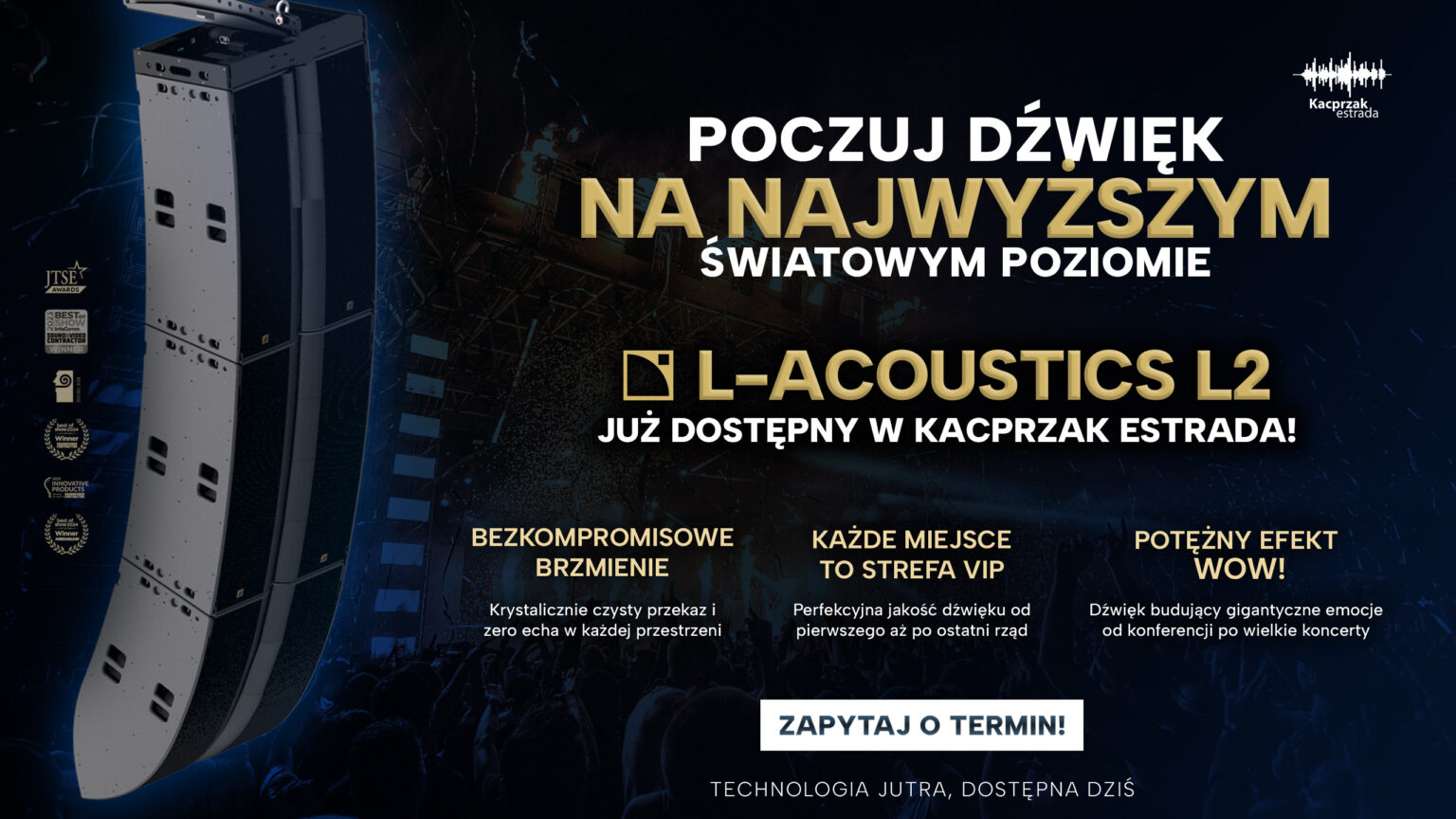 Dysponujemy wieloletnim doświadczeniem w dziedzinie nagłośnienia, operując na systemach światowego lidera branży audio – firmę L-acoustics.